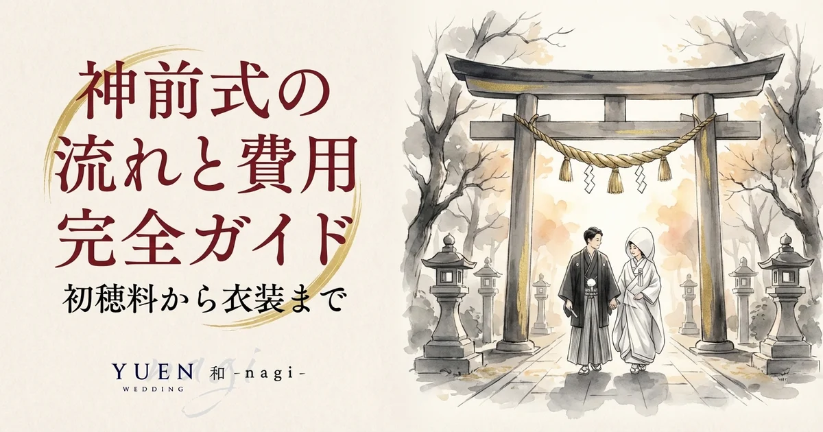 「神前式ってどんな流れで行われるの?」「費用はどのくらいかかる?」——日本の伝統的な結婚式スタイルである神前式は、厳かな雰囲気と和の美しさが魅力です。しかし、チャペル式に比べて馴染みが薄いため、式の流れや費用がわかりにくいと感じる方も多いはずです。