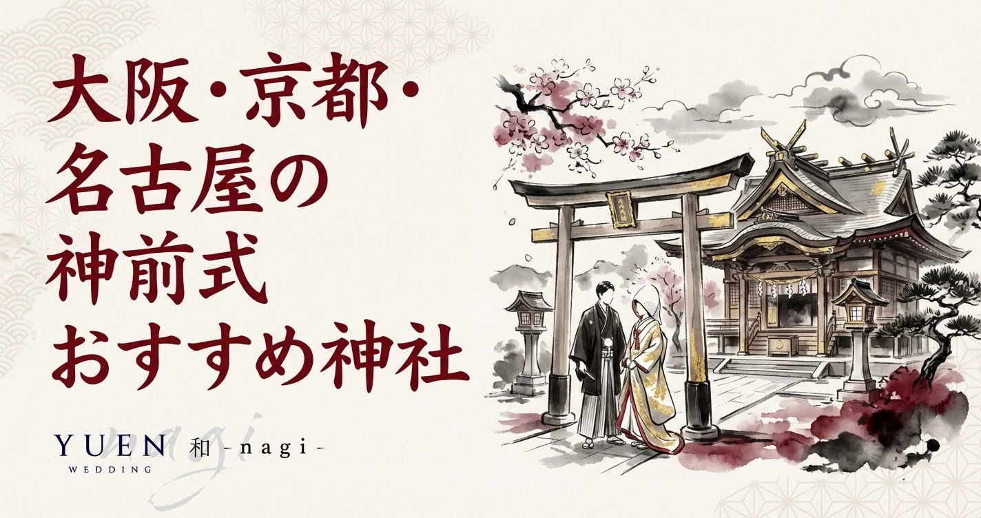 この記事では、大阪3社・京都3社・名古屋2社の計8社を厳選し、初穂料・収容人数・アクセス・特徴を一覧で比較します。神前式の基本的な流れや服装マナーを先に確認したい方は神前式とは?流れ・費用・服装マナー完全ガイドをご参照ください。