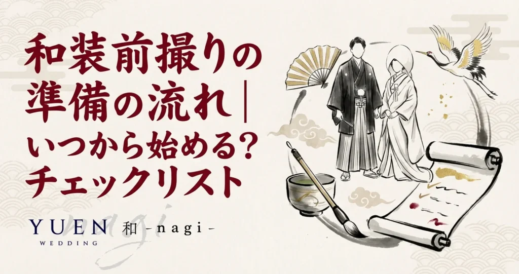 この記事では、和装前撮りの準備スケジュールから当日の流れ、必要な持ち物まで、チェックリスト付きで詳しく解説します。和装前撮りの全体像については「和装前撮り完全ガイド2026」も参考にしてください。