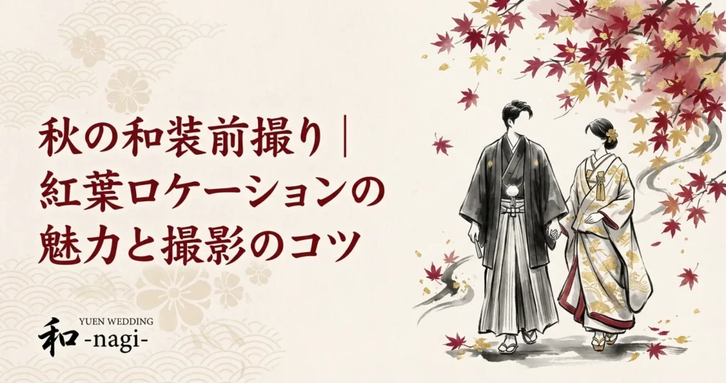 和-nagi-では、紅葉シーズンの和装前撮りを承っています。人気の時期のため、早めのご相談をおすすめします。