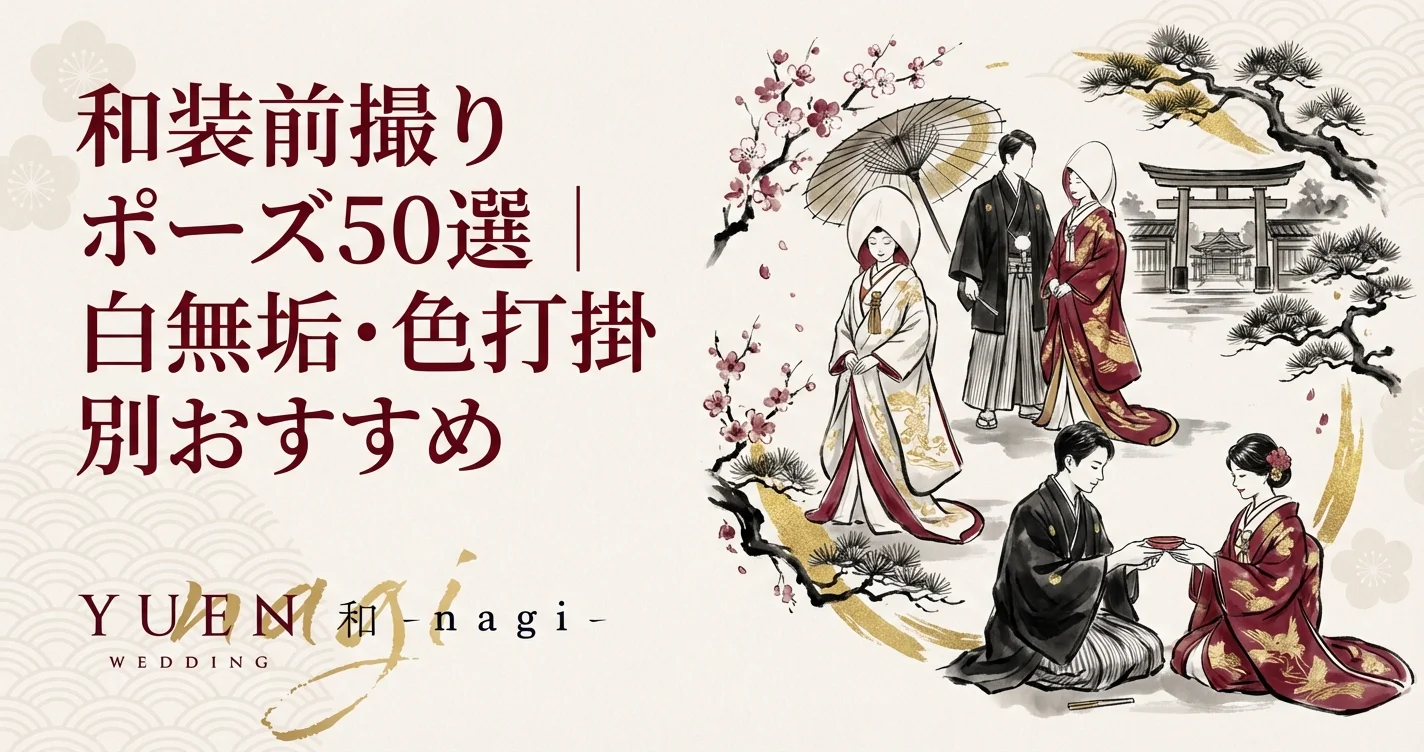 「和装で前撮りをしたいけれど、どんなポーズがいいかわからない」「白無垢と色打掛、それぞれに合うポーズを知りたい」そんな方のために、和装前撮りで人気のポーズ50選を厳選してご紹介します。定番から個性派まで、ふたりらしい1枚を撮影するためのアイデア集です。