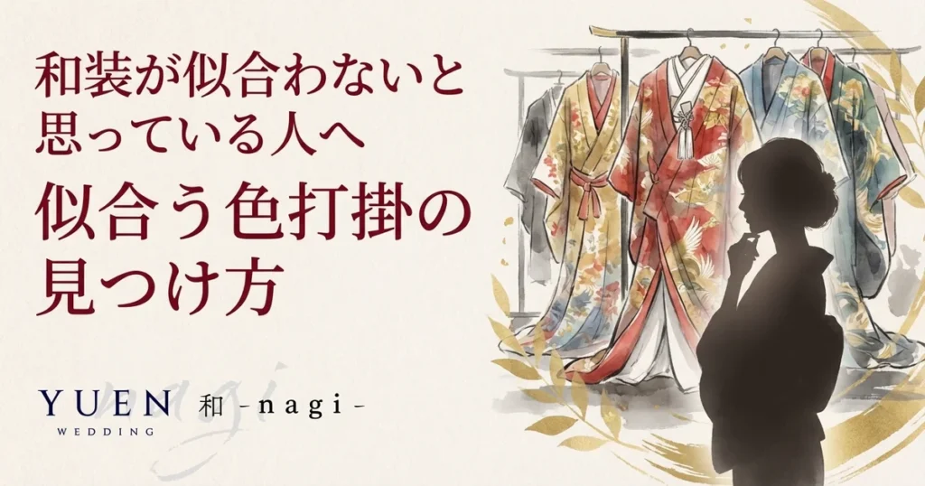 結論からお伝えすると、和装が本当に似合わない人はほとんどいません。「似合わない」と感じてしまうのは、色打掛の色選びや着付けの仕方が合っていないケースがほとんどです。この記事では、和装が似合わないと感じる原因を4つのパターンに分けて分析し、パーソナルカラーを活かした色打掛の選び方や、プロの着付けによる体型補正テクニックまで具体的に紹介します。